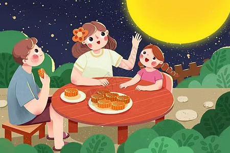 很久很久以前,人们发现每年农历八月十五的月亮最圆、最亮。这一天,不管家人走多远,都会尽量赶回家一起吃饭、看月亮,慢慢就有了“中秋节”。就像我们放学想回到爸爸妈妈身边,中秋节就是让大家和最爱的人聚在一起,分享快乐、互相陪伴的日子。