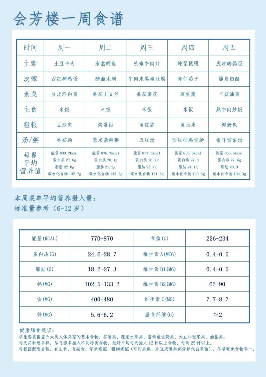 本周配餐营养食谱