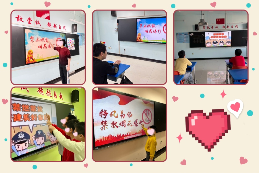 为贯彻落实国务院《烟花爆竹安全管理条例》及《天津市烟花爆竹安全管理办法》等有关法律法规,增强全体师生的安全意识与环保意识,保障师生身心健康,营造安全、文明、祥和的校园及社区环境,我校结合特殊学生的认知与理解特点,于近期组织开展了形式多样、注重实效的“禁止燃放烟花爆竹”系列宣传教育活动。