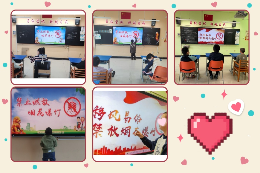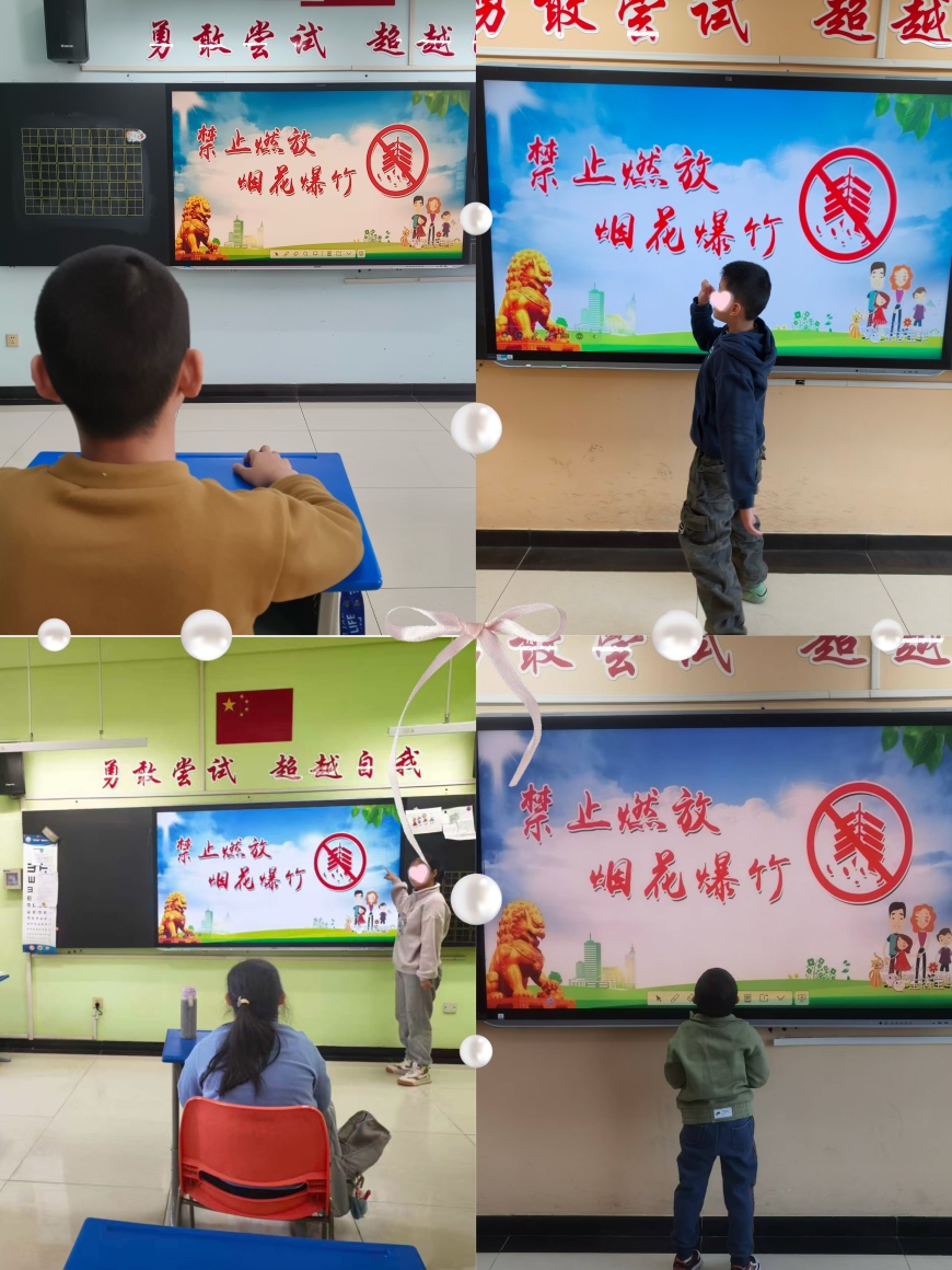 利用班会课时间,各班播放禁燃禁放烟花爆竹宣传短片。短片采用动画、实景对比、卡通人物讲解等形式,生动形象地展示了烟花爆竹的危险性以及禁放带来的好处(如干净的天空、安静的环境、安全的玩耍空间)。随后,教师结合短片内容,通过互动提问、情景图示、实物(安全替代品如电子鞭炮、喜庆灯笼图片)展示等方式,与学生进行交流,巩固他们对禁放规定和理由的认识。班会课注重氛围营造和集体强化,形成了良好的宣传教育声势。