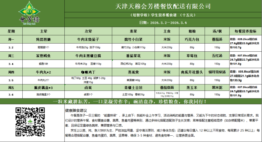 本周配餐营养食谱